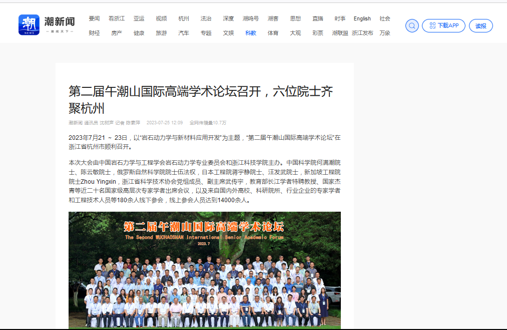 2023年7月21-23日,以“岩石动力学与新材料应用开发”为主题,“第二届午潮山国际高端学术论坛”在浙江省杭州市顺利召开。