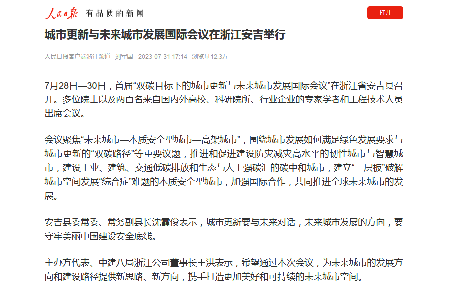 人民日报客户端、学习强国、潮新闻客户端等媒体关注双碳目标下的城市更新与未来城市发展国际会议