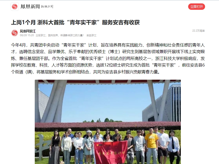 今年4月,共青团中央启动“青年实干家”计划,旨在培养具有实践能力、创新精神和社会责任感的青年人才,选聘信念坚定、品学兼优、乐于奉献的优秀硕士(博士)研究生到基层各领域兼职开展线下线上实岗锻炼、兼任基层团干部。作为全省首批“青年实干家”计划试点的两所高校之一,久久精品一区二区|久久久一区二区三区|欧美日韩视频|欧美福利视频|高清欧美性猛交xxxx黑人猛交|久久久www成人免费精品|在线观看成人网站积极响应,发挥学校在教育、科技、人才等方面的资源优势,选拔12位硕士研究生成为首批“青年实干家”,前往安吉县6个街道(镇),将基层服务和学术创新相结合,共同为安吉县乡村振兴贡献青春力量。
