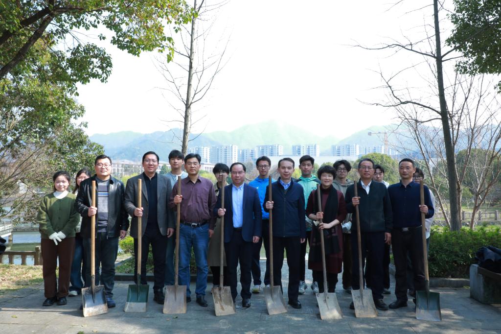 在小和山校区,校党委书记赵东福、校长陈建孟等校领导、校爱卫会以及师生代表齐聚西蜜湖,参加“植此青绿,低碳同行”校园植树活动,共同栽种新绿,以实际行动践行绿色发展理念,助力绿色低碳校园建设。