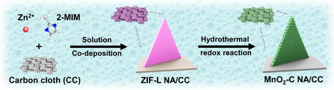 δ-MnO2-C NA/CC电极制备过程示意图