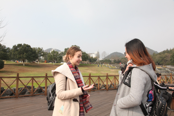 绘有各种卡通人物的KT板,引发了大家对电影、爱好、文化的探讨,中外师生聊得不亦乐乎。象征着幸福和吉祥的窗花、囍字等中国剪纸让大家大饱眼福,还为英语角带来了喜庆的新年气氛。正好经过广场的同学也纷纷加入到“开口说,畅快聊”的自由英语讨论中。谈论话题丰富,地域文化、专业学习、汉语特点、美国大选、G20和临近的期末考试,彰显了英语角“free talk”的魅力。