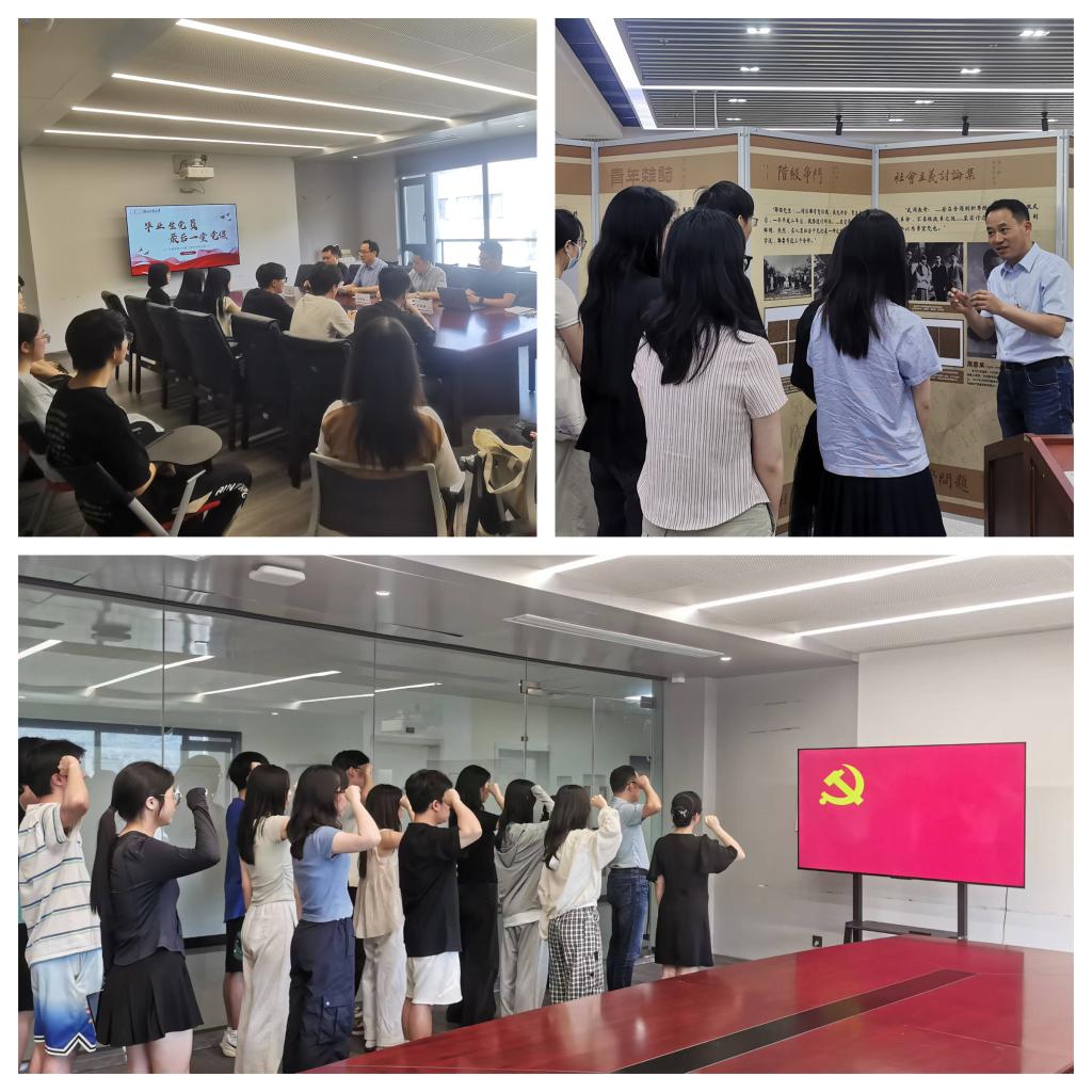 “一课”明方向。学院党委书记为毕业生党员上“最后一堂党课”,结合学院国际化办学特色,为毕业生党员提供思想指引和行动指南。“一展”强信念。学院组织学生党员参观“书信家国 尺牍情深 弘扬伟大建党精神”长三角档案联展,通过珍贵红色档案以史育人,强化理想信念教育。“一谈”固根基。领导班子与新发展学生党员面对面,围绕入党动机、党员标准等深入交流,引导其在学业实践中学思践悟,切实发挥先锋模范作用,夯实思想基础。“一誓”践初心。学生党员重温入党誓词,强化党员身份意识,在铮铮誓言中传承红色基因,激励学生党员永葆政治本色、勇担时代使命。
